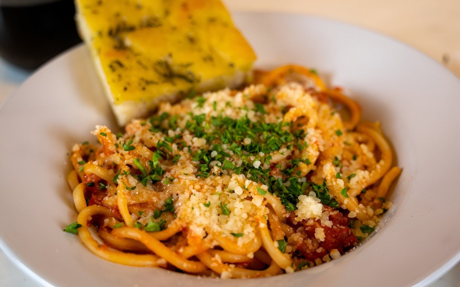 We are known for Spaghetti, Vegetarian Food, Caesar Salad, Pasta, Arancini, Focaccia, Bolognese, Salads, Shrimp Scampi, Meatballs, Pesto Alla Genovese, and Tiramisu